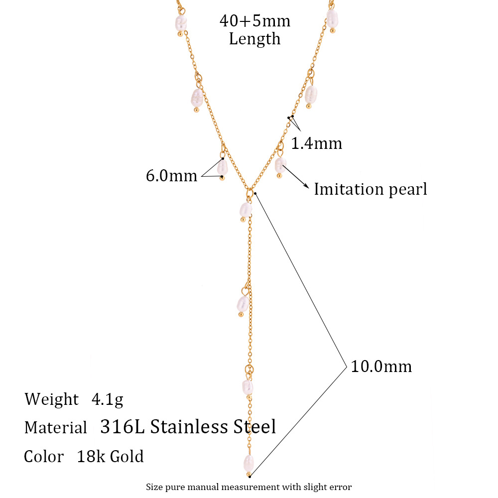 Minimalist Popular Y-Shaped Pendant Light Luxury Freshwater Pearl Stainless Steel Tassel Necklace CA07830879.