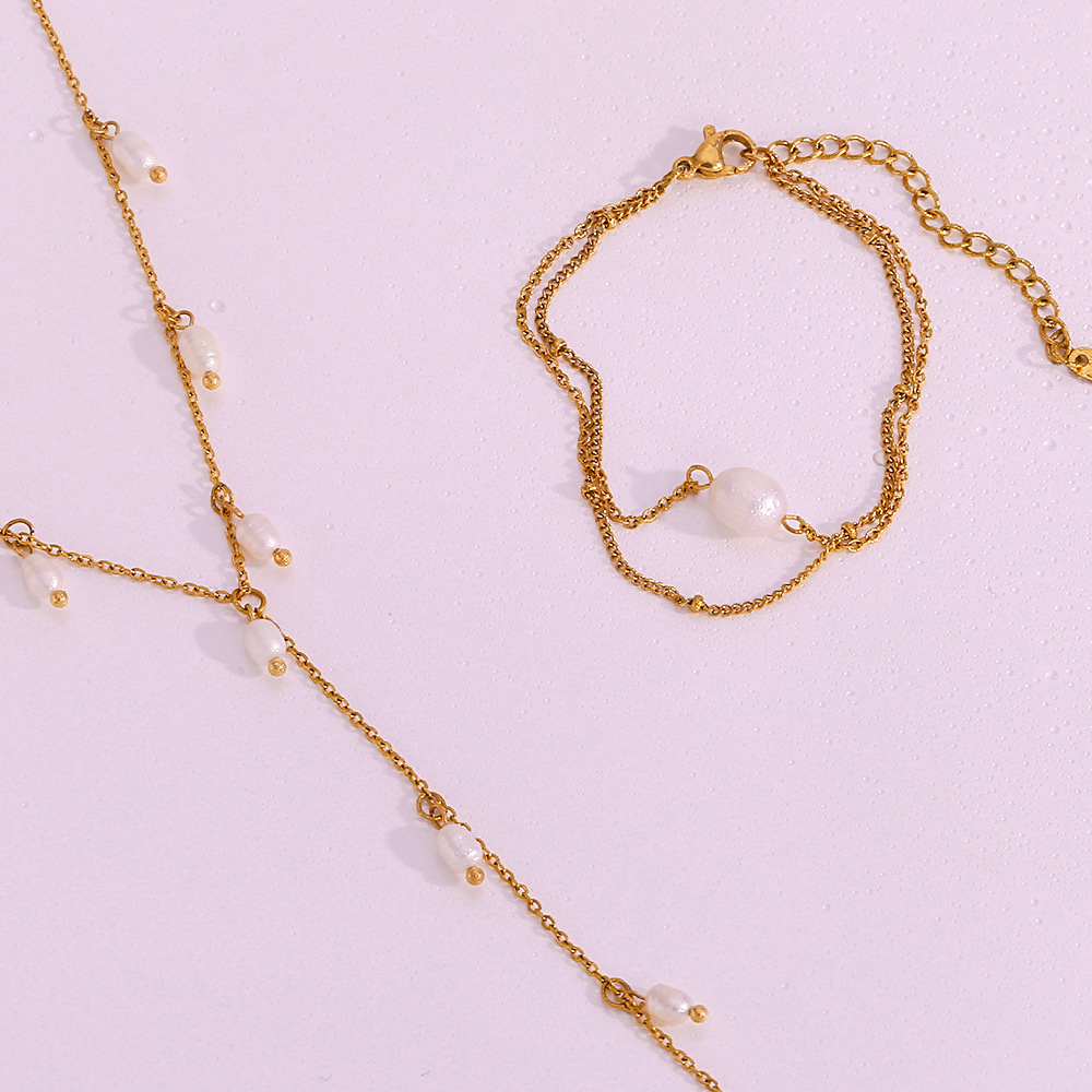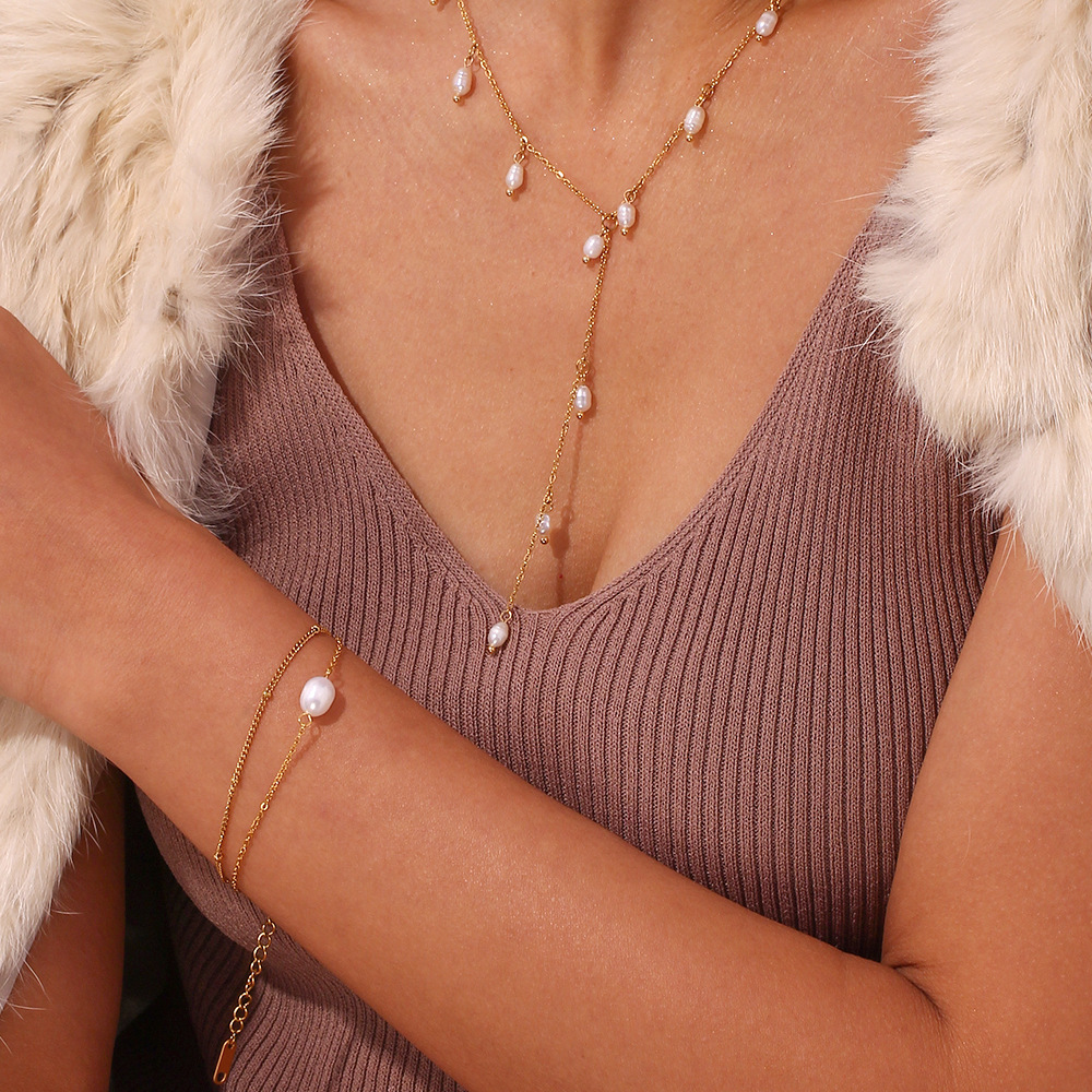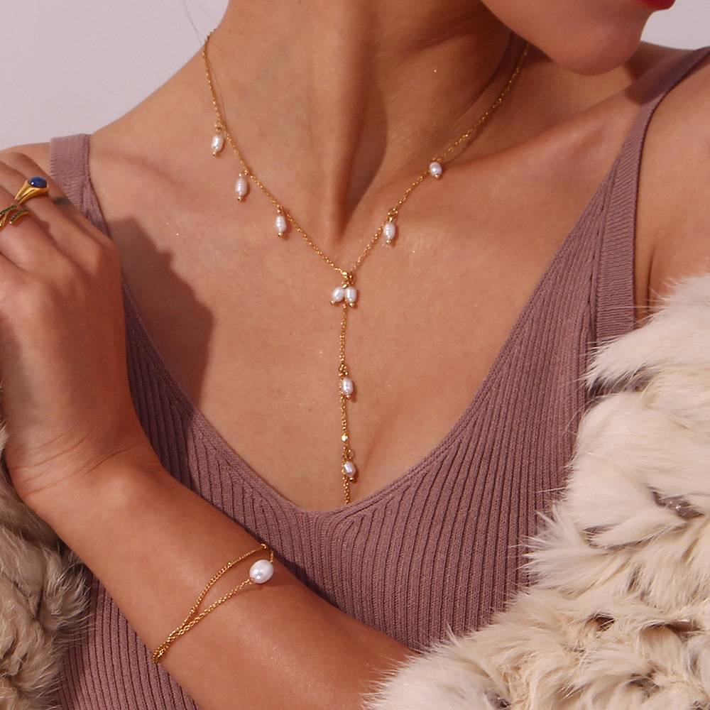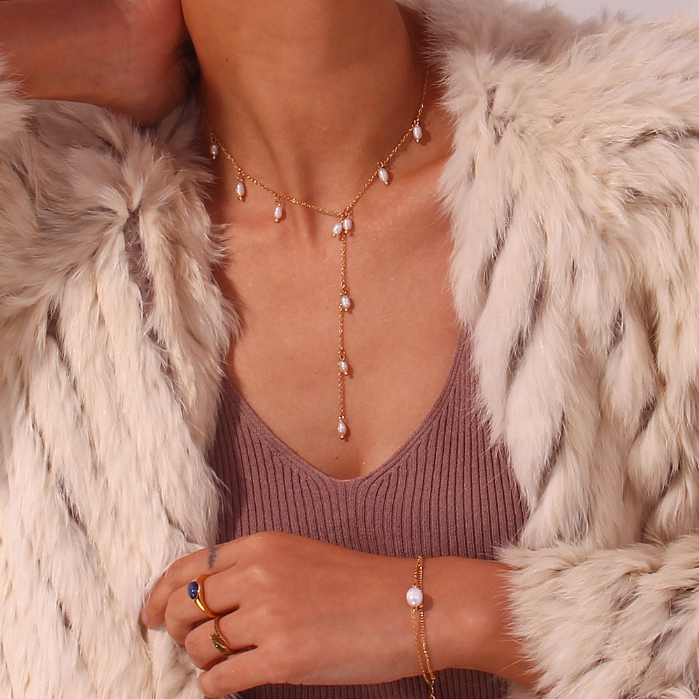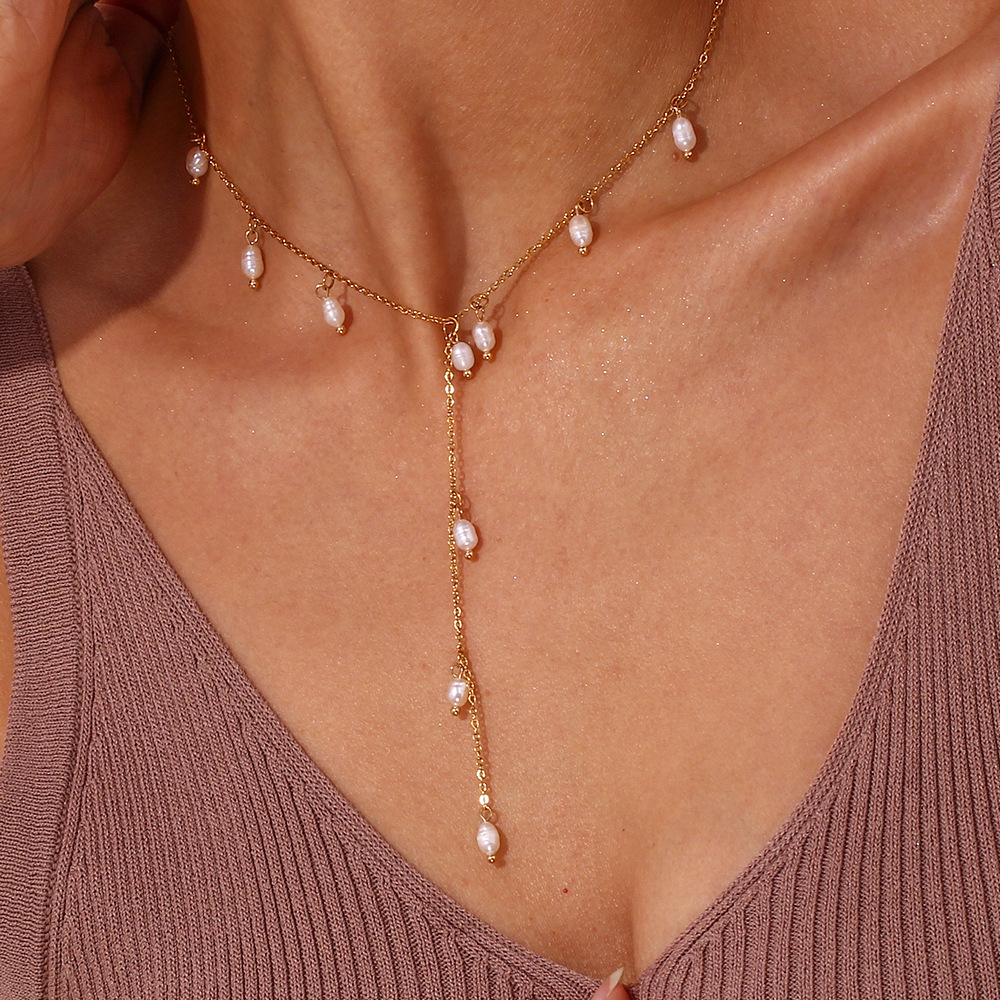 Minimalist Popular Y-Shaped Pendant Light Luxury Freshwater Pearl Stainless Steel Tassel Necklace Wholesale