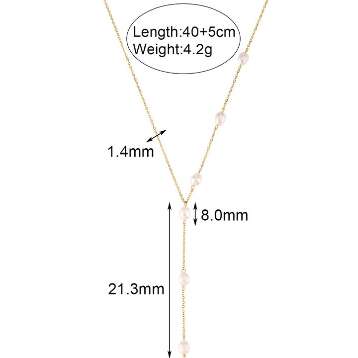Minimalism Y-Shaped 6 Pearl Beaded Stainless Steel Tassel Necklace CA07830780.