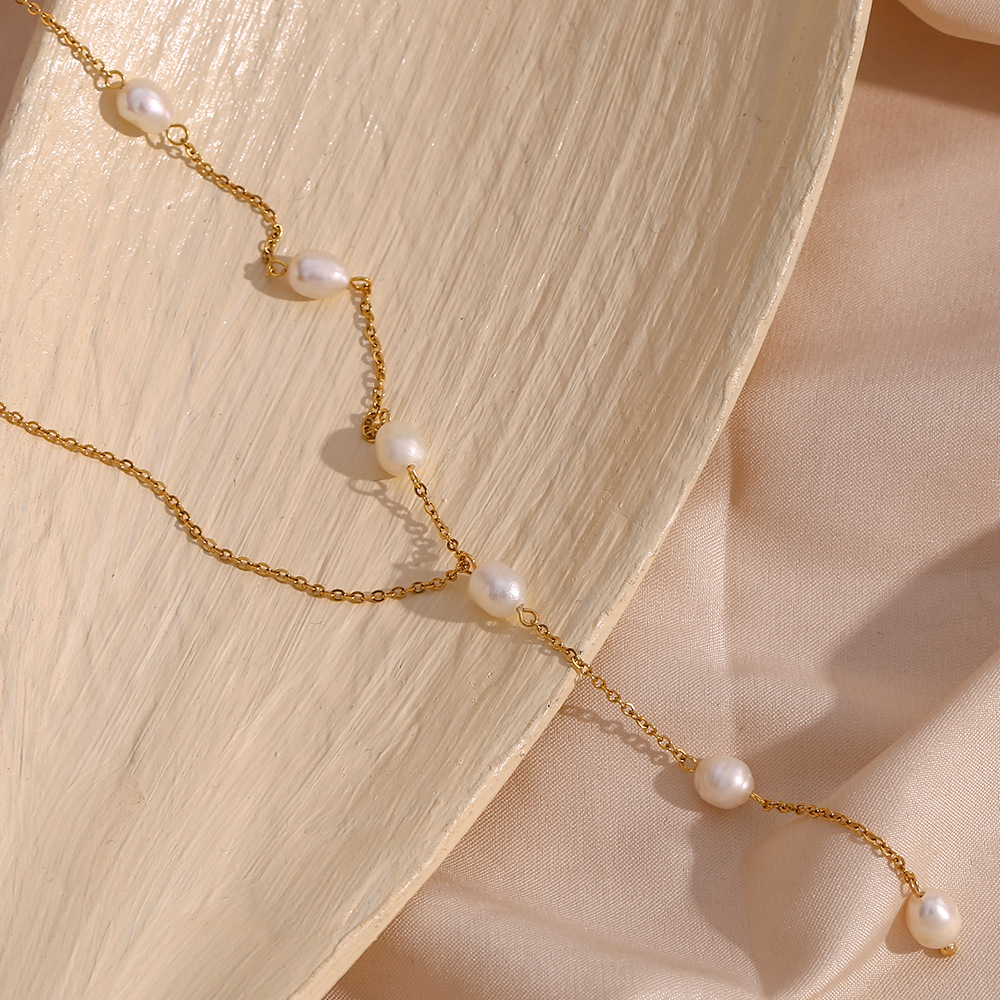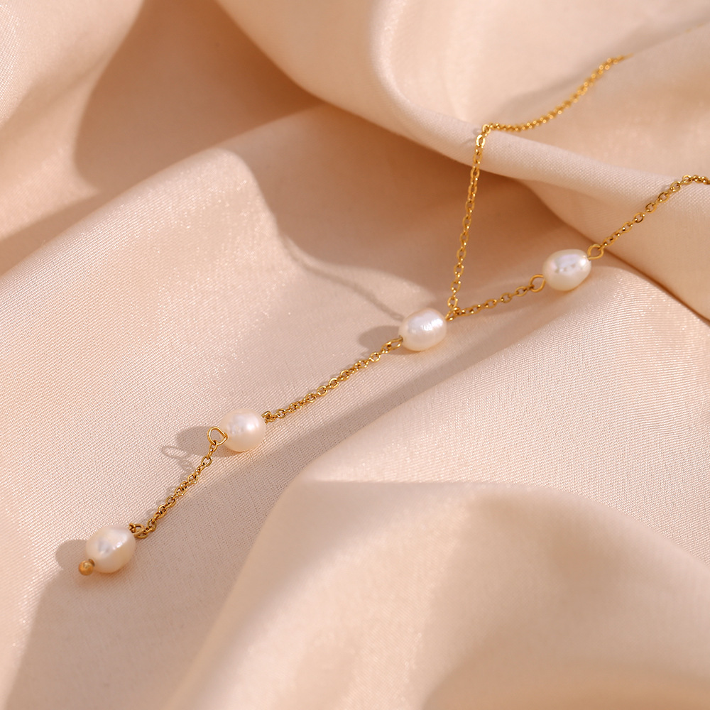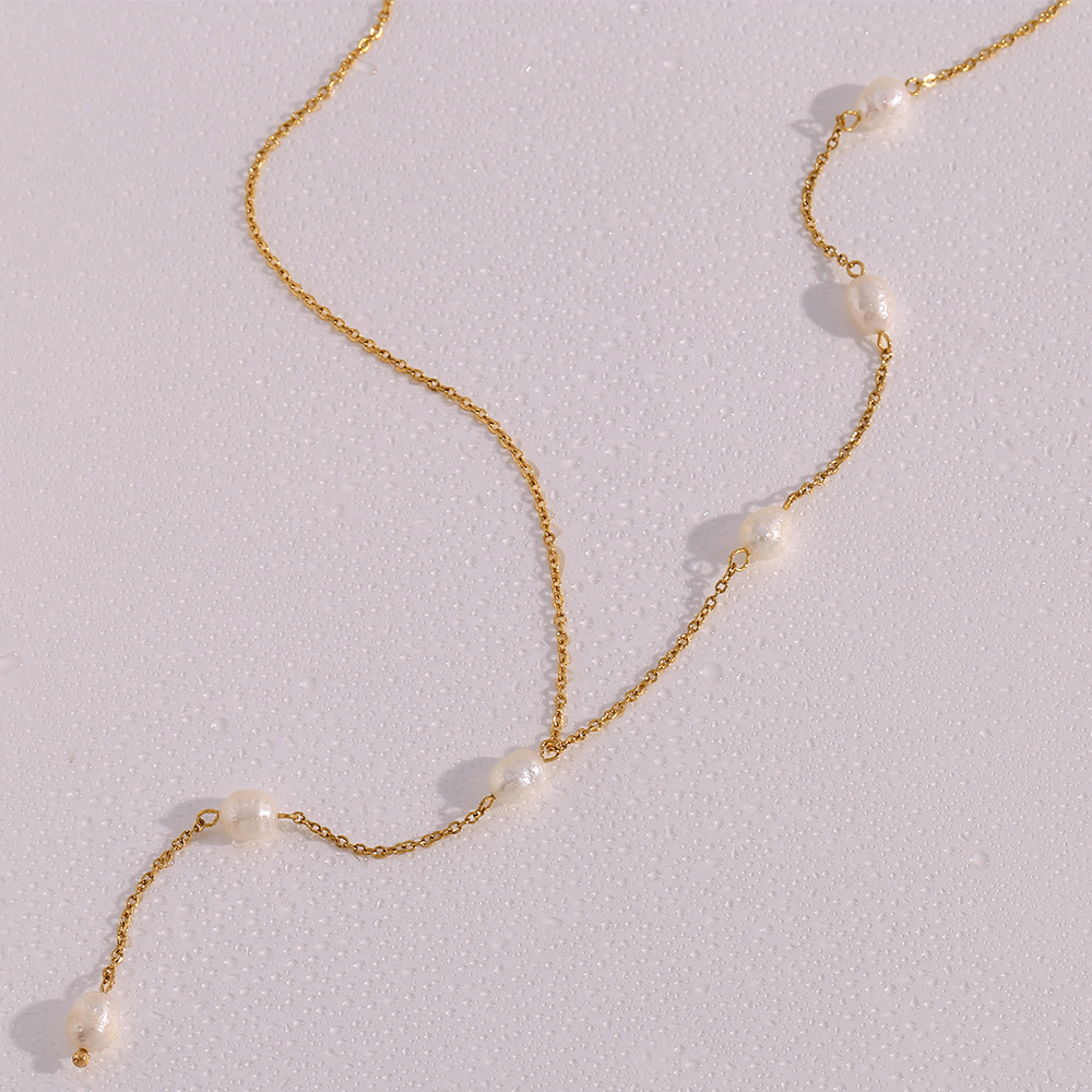 Minimalism Y-Shaped 6 Pearl Beaded Tassel Stainless Steel Necklace Wholesale