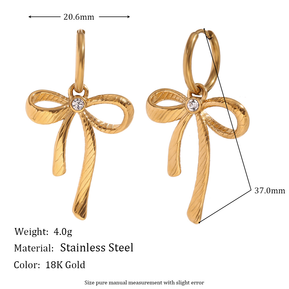 Wholesale Stainless Steel Fine Jewelry Diamond Bow Pendant Necklace-Earrings