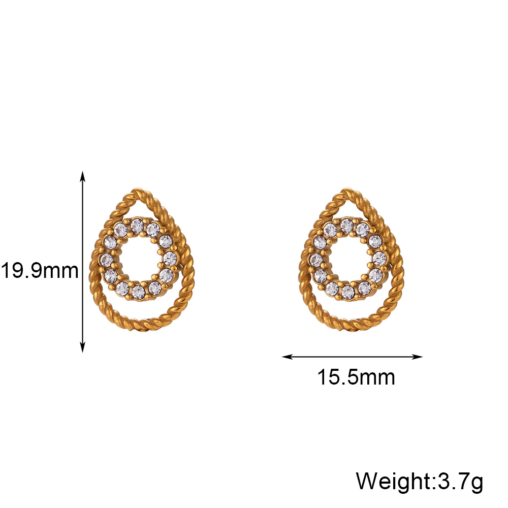 Wholesale Stainless Steel Fine Jewelry Minimalism Hollow Water Drop Pendant Necklace Zircon Inlaid Earrings.