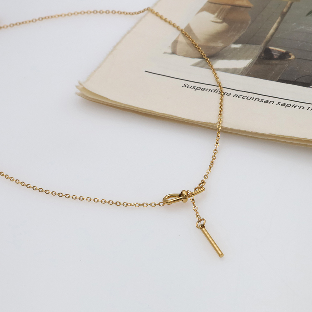 Wholesale Stainless Steel Necklace Fashion Simple Bow Fringe Niche Non-fading Geometric Necklace.
