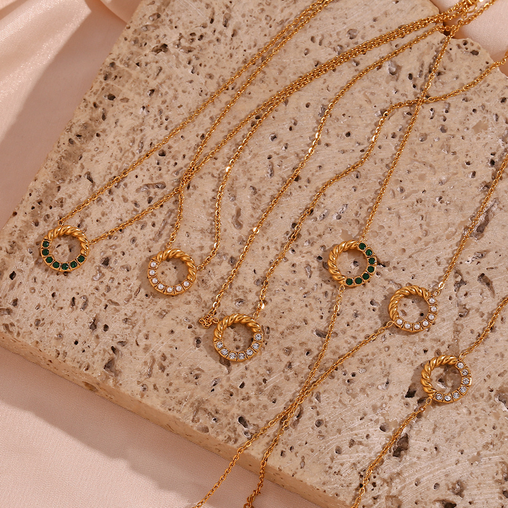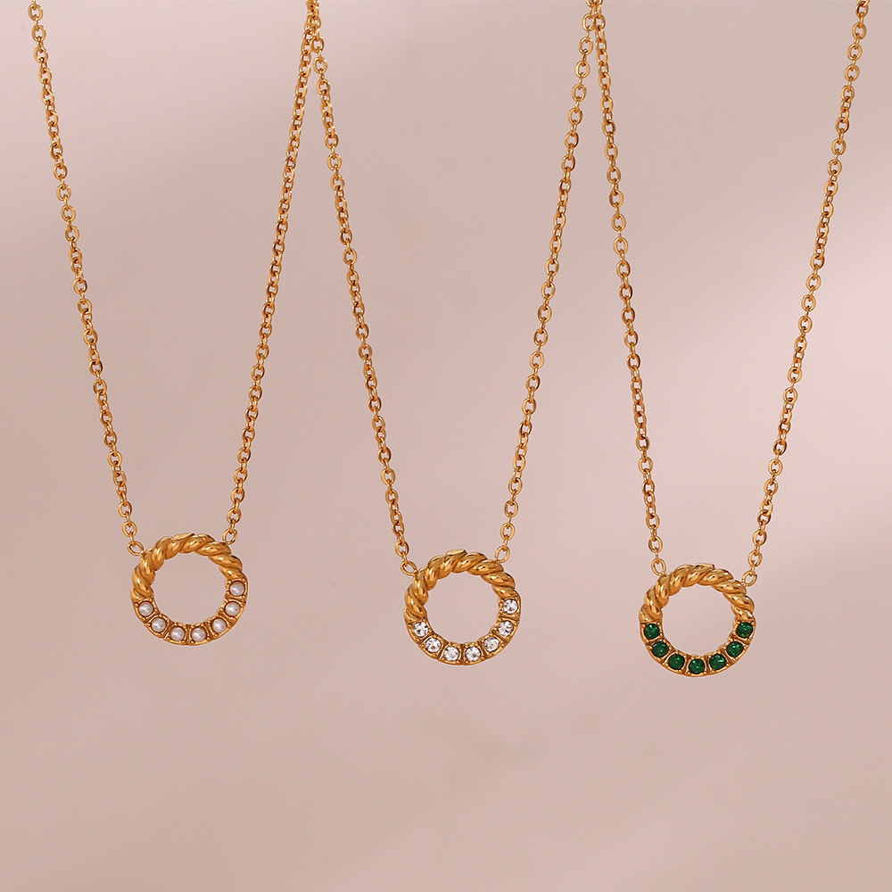Wholesale Stainless Steel Necklace Twist Circle Pendant Necklace Bracelet-Necklace-03
