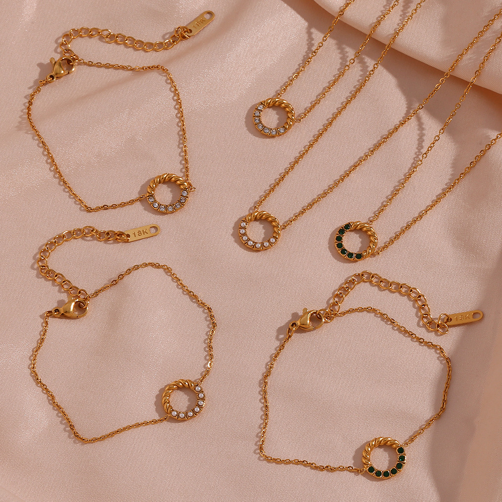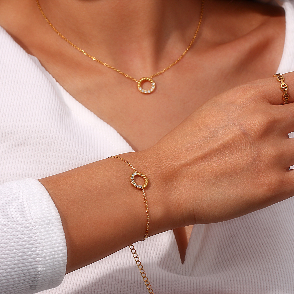 Wholesale Stainless Steel Necklace Bracelet Fashion Simple Twist Circle Pendant Necklace Fine Jewelry.